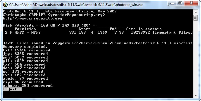 While PhotoRec is not the fastest data recovery program I have used (it is also not that slow; it took just over 12 minutes to recover data from a ~5GB partition), the recovery rate of PhotoRec is the best I have ever seen. It successfully recovered thousands of files for me (yes, it is even more powerful than DiskDigger) – and it recovers many, many different types of files, including by not limited to images, movies, documents, and executables.