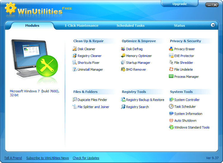 So what exactly consists of the “Basic PC Care” that WinUtilities Free has? All of this: