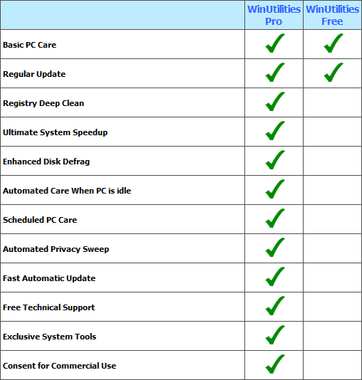 These are the major differences, as defined by the developer, between WinUtilities Professional and WinUtilities Free: