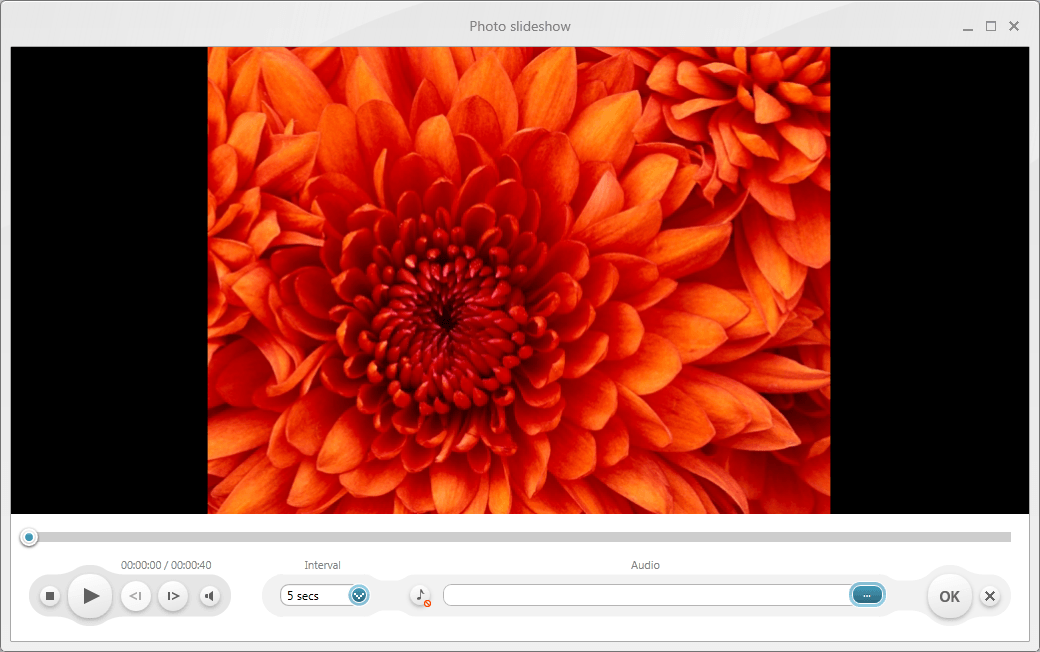 Creating slideshows out of images is as easy as inputting the images you want to make a slideshow out of, selecting the output video format, and converting. You do, however, have the option of customizing a couple of slideshow settings such as the interval between images and background audio: