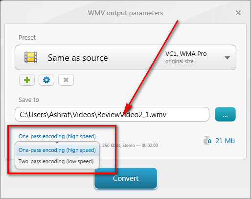 - (Optional) Select if you want to conduct a two-pass encoding, or leave it at one-pass: