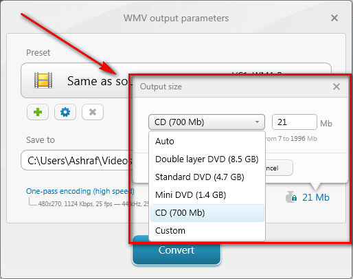 - Customization of the output file size is kind of pointless. The customization of output file size is not automatically splitting output file by size (i.e. if you set it to 200 MB, FVC will not split your 600 MB video into three 200 MB parts). Rather, it is just an artificial manipulation of output video size. For example, if you have a video that would normally be 20 MB, you have the ability to make it 200 MB. (No change in output quality, either.) Why would someone want to do this is beyond me. I would much rather the developer take this feature out and add an automatic splitting of output file by size option; having the ability to automatically split output file by size would be very handy if someone is looking to put videos on multiple CDs, for example.