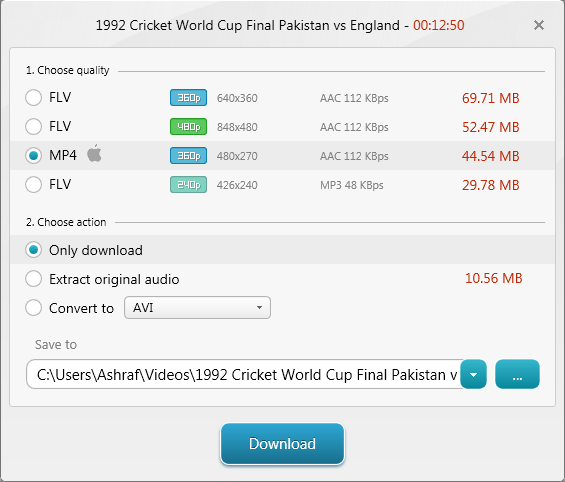 Note how FVD allows me to download the Youtube video in different qualities, and I am not forced to convert it to another format – I can simply download the video and keep it in its original format. That is the main difference between FVD and FVC in regards to downloading videos: FVD allows users to download videos in different qualities (if available), and users are not forced to the convert the video after it has been downloaded.
