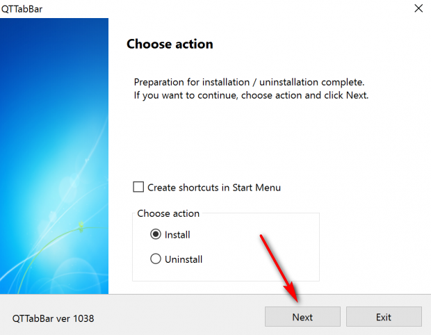 The QTTabBar then installs on the computer. Click on the “Exit” button when you get to the “Installation finished successfully” screen.