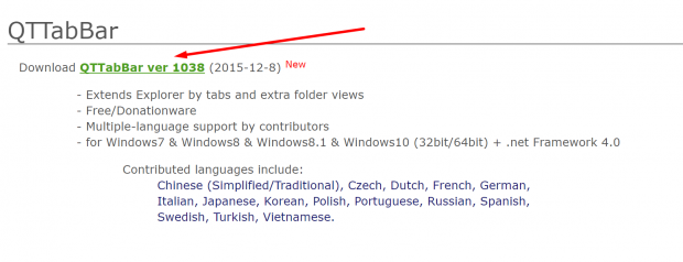 Head to the QTTabBar web page and click on the download link that is available in green.