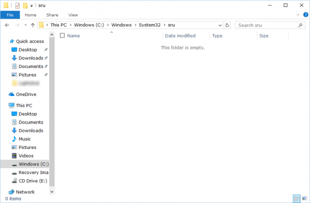 Navigate to the Start menu > File Explorer and then in the address bar, type “C:\Windows\System32\sru” to get access to the SRU folder.
