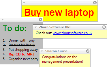 - Being able to “attach” notes to websites, documents, folders, or program windows so that the note will only appear when that website, document, folder, or program is open;