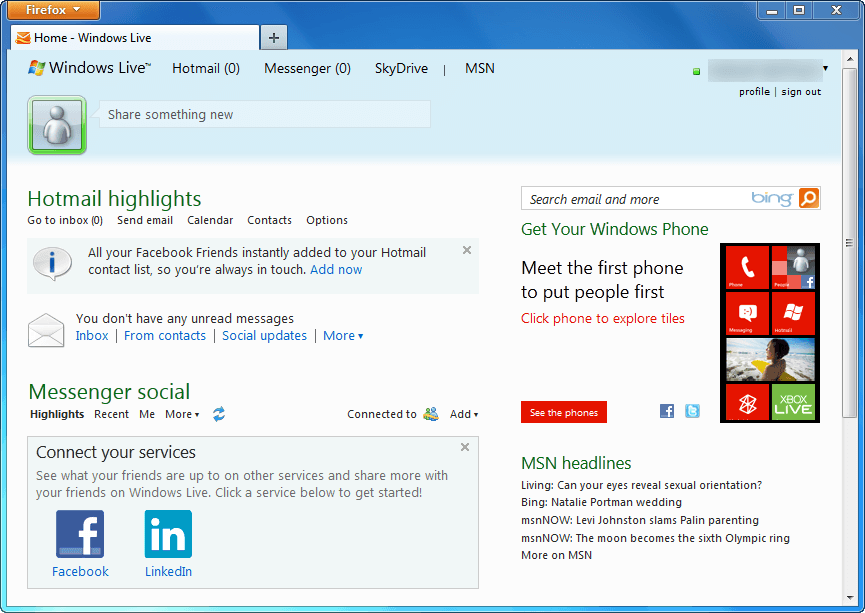 If you opted to send feedback, you will be asked a series of questions after which you will be taken to Hotmail; if you opted to not send feedback, you will be taken directly to Hotmail: