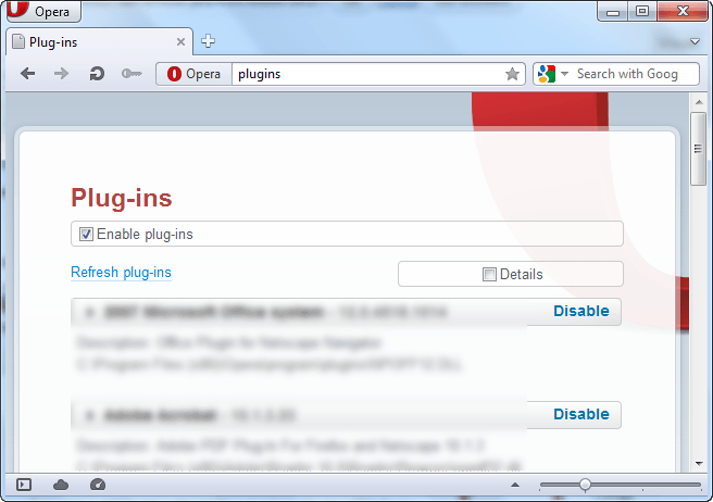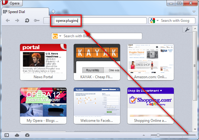 - Run Opera, type “opera:plugins” (without the quotes) in the address bar, and hit Enter on your keyboard: