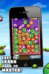 Do you enjoy match-3 games but crave something unique and different in that genre? Then I suggest you download Mooniz and take it for a spin. The premise of Mooniz is much like the games where you touch 3 bubbles in a row and they pop/disapper, except for a few exceptions. Well first and foremost, the bubbles are now little moon monsters and you need to save the world by eliminating them. But what really sets this game apart from any in its genre is the combination of the moon monsters being round and the app’s use of gravity. In most match-3’s, the jewels/bubbles are all perfectly placed in quadrants, so they line up horizontally and vertically as they fall. Mooniz takes the concept in a different direction by having the circular moon monsters fall and watching gravity settle them into place (as seen in the screenshot). Besides just popping a trio of moon monsters, the developers also provide a unique set of 8 power-ups to help you on your way.