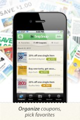 I want to mention two amazing features (of many) that puts this app over the top as far as I am concerned. First, there is a GPS feature in SnipSnap that is programmed to recognize when you are in a store that you have a coupon for and it accordingly alerts you. Incredible! Second, the app also reminds you of upcoming expiration dates for your coupons. I know I would forget if the app didn’t remind me, so this is a great feature. In general, if you cut coupons for anything other than the supermarket, this SnipSnap seems like a tremendous utility to have.